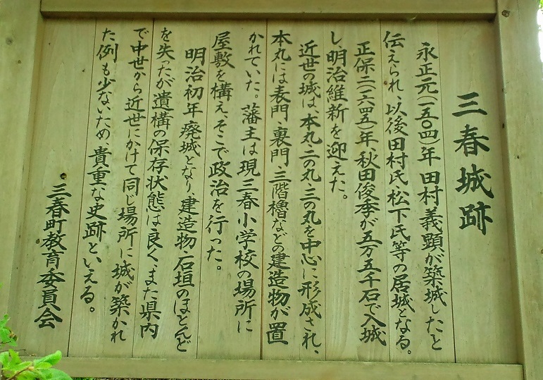 Miharu Castle used to stand in Miharu Town, Tamura District, Fukushima Prefecture. It is said to be built by Tamura Yoshiaki in the beginning of the Warring States period, but we don’t know the accurate year.